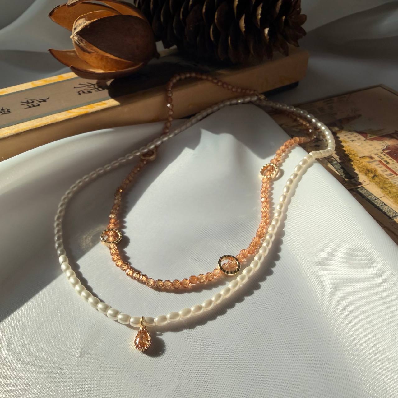 Колье "Golden Memories". Винтажная романтика в каждом слое. Белый жемчуг и персиковые бусины с золотыми монетками создают эффект многослойности и глубины. Идеально для тех, кто любит сочетать классику с винтажным шармом. Тёплые оттенки напоминают об осени и уютных воспоминаниях.